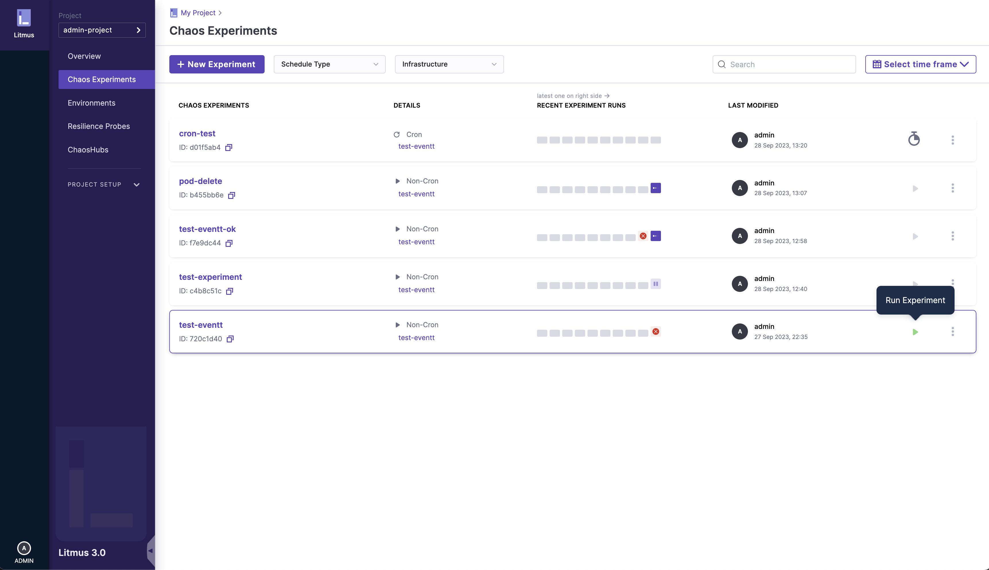 You can learn how to schedule your first chaos experiment here.